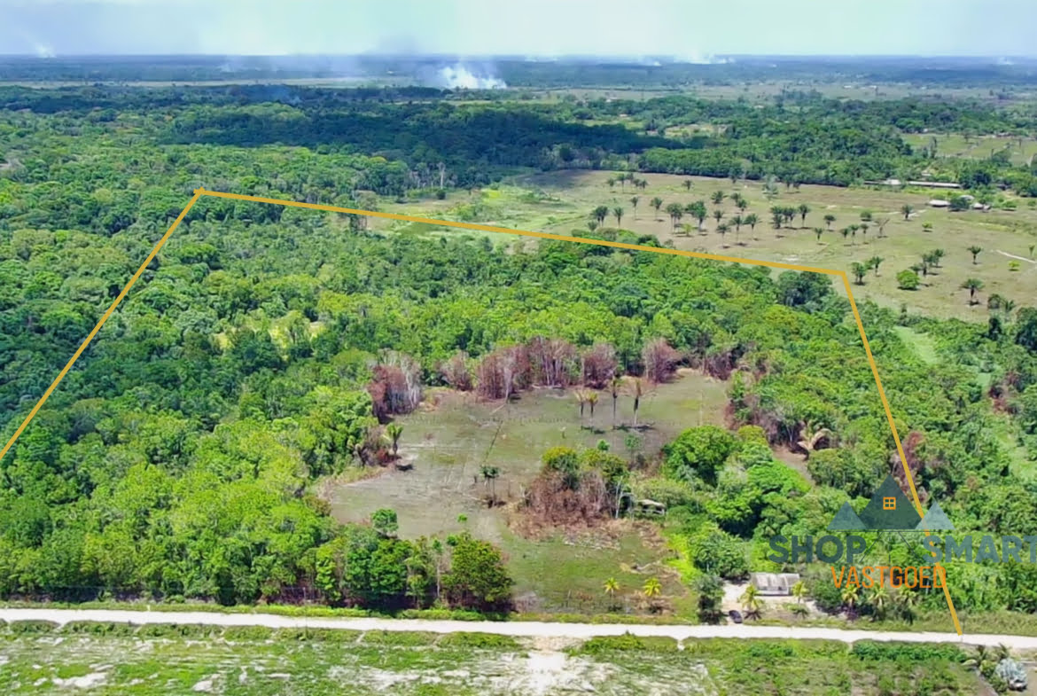 Deze buurt is in de spotlight. Een buurt in ontwikkeling. Dit perceel is geschikt voor de tuinbouw, veeteelt, huizenbouw etc. Het perceel is grondhuur en is uitgegeven voor 40 jaren in 1988 en verloopt in 2028. Het kan verlengd worden na aanvraag bij het Ministerie . Het heeft een frontbreedte van 241m. Dit perceel is gelegen aan een goed onderhouden zandweg dat vrij hoog gelegen is.